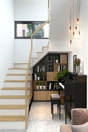 Gầm cầu thang là một trong những “góc chết” phổ biến nhất, bởi ngôi nhà tầng nào cũng sở hữu góc này. Khu vực này được cho là khó khai thác và luôn gây ra những khó chịu về thẩm mỹ cũng như các phiền toái khác khi làm vệ sinh.