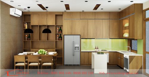 7. Tủ bếp kết hợp với tủ trang trí, thích hợp cho phòng ăn riêng biệt.